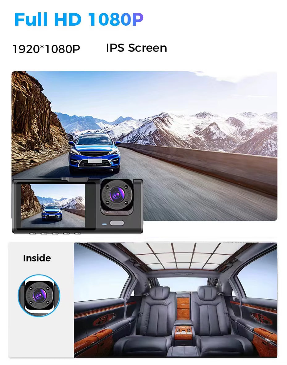 Simultaneously capture crystal-clear Full HD 1080P video from both the front of your vehicle and the interior cabin, providing complete coverage of any incidents.